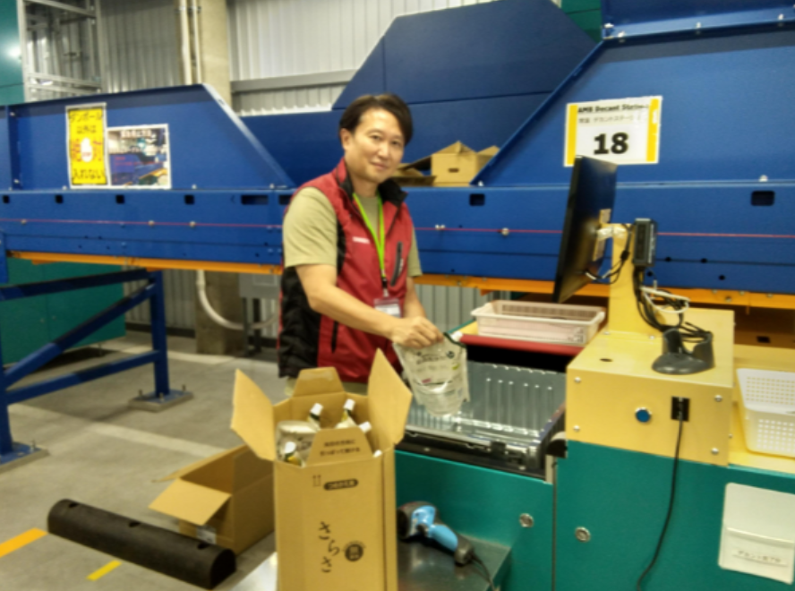 CFCでは品物のピッキングや搬送はロボットが行いますが、野菜・果物の場合、最終的な検品には必ず人の目が入ります。私が過去に関わったロジスティクスでは、検品は専門の品質管理部が行うのが一般的でした。一方で、CFCでは、入出荷のスタッフ全員に検品の知識が求められてきます。野菜・果物の検品については、野菜や果物の種類によって、鮮度の見分け方は異なるものです。休憩スペースのサイネージには常に目利きのポイントを解説した動画が流れていたり、野菜・果物店出身のスタッフが周囲に教えたり、全員で検品の精度向上を目指しています。効率重視の淡々とした仕事ではなく、人がラストワンマイルの品質を担うため、責任感とやりがいを感じられる職場です。それに、検品で養った目利きの力は普段の買い物でも活かすことができて、生活が豊かになりますね。